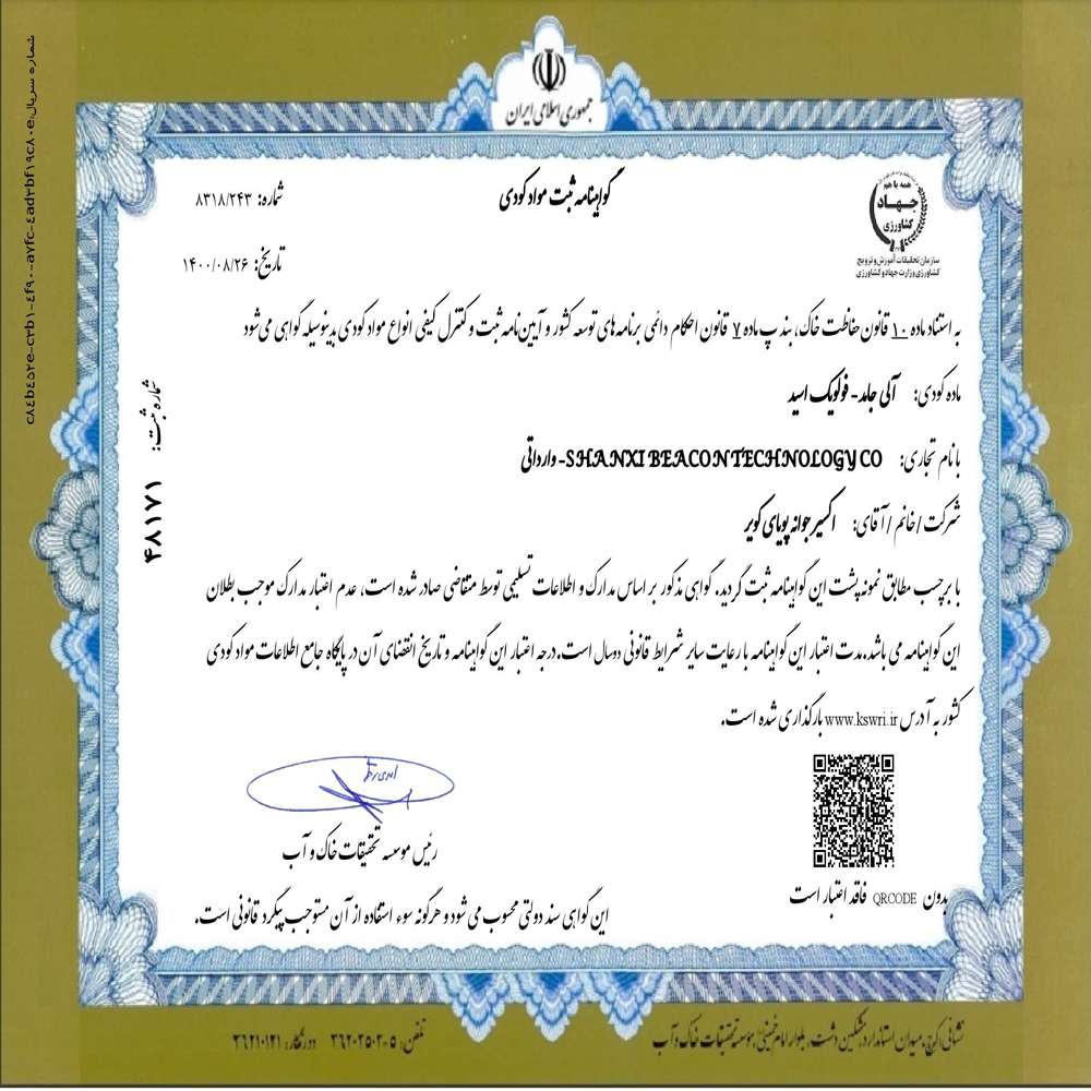 بیوفولویک اسید بیکن یک کود ضد خشکسالی خوب، تنظیم کننده رشد گیاهان با طیف وسیع، تقویت کننده کودهای دیگر جهت هم افزایی انتشار آفت کش ها و عامل کلات کننده مواد شیمیایی است.