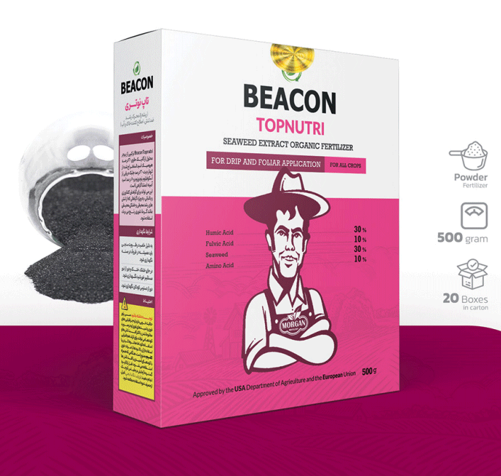 بیکن تاپ نوتری ترکیبی از پودر محلول ارگانیک حاوی 30 درصد هیومیک اسید استخراج شده از لئوتاردیت ، 30 درصد جلبک دریایی از آسکوفیلوم نودوزوم و 10 درصد اسید آمینه (منشا گیاهی) است.